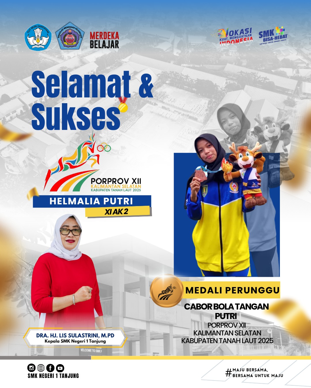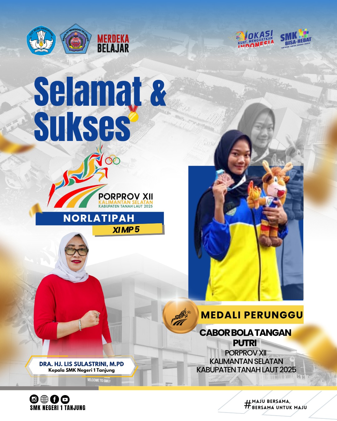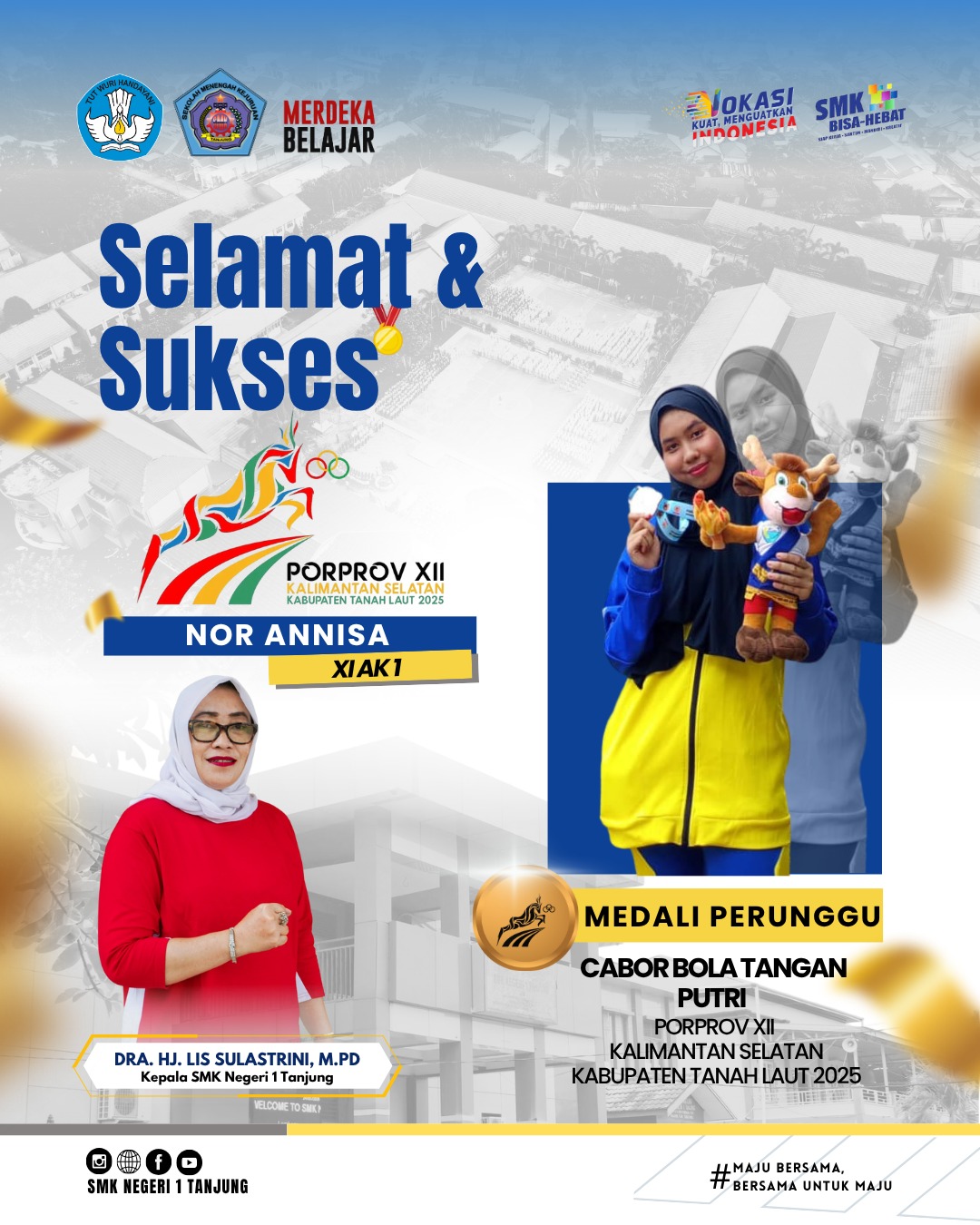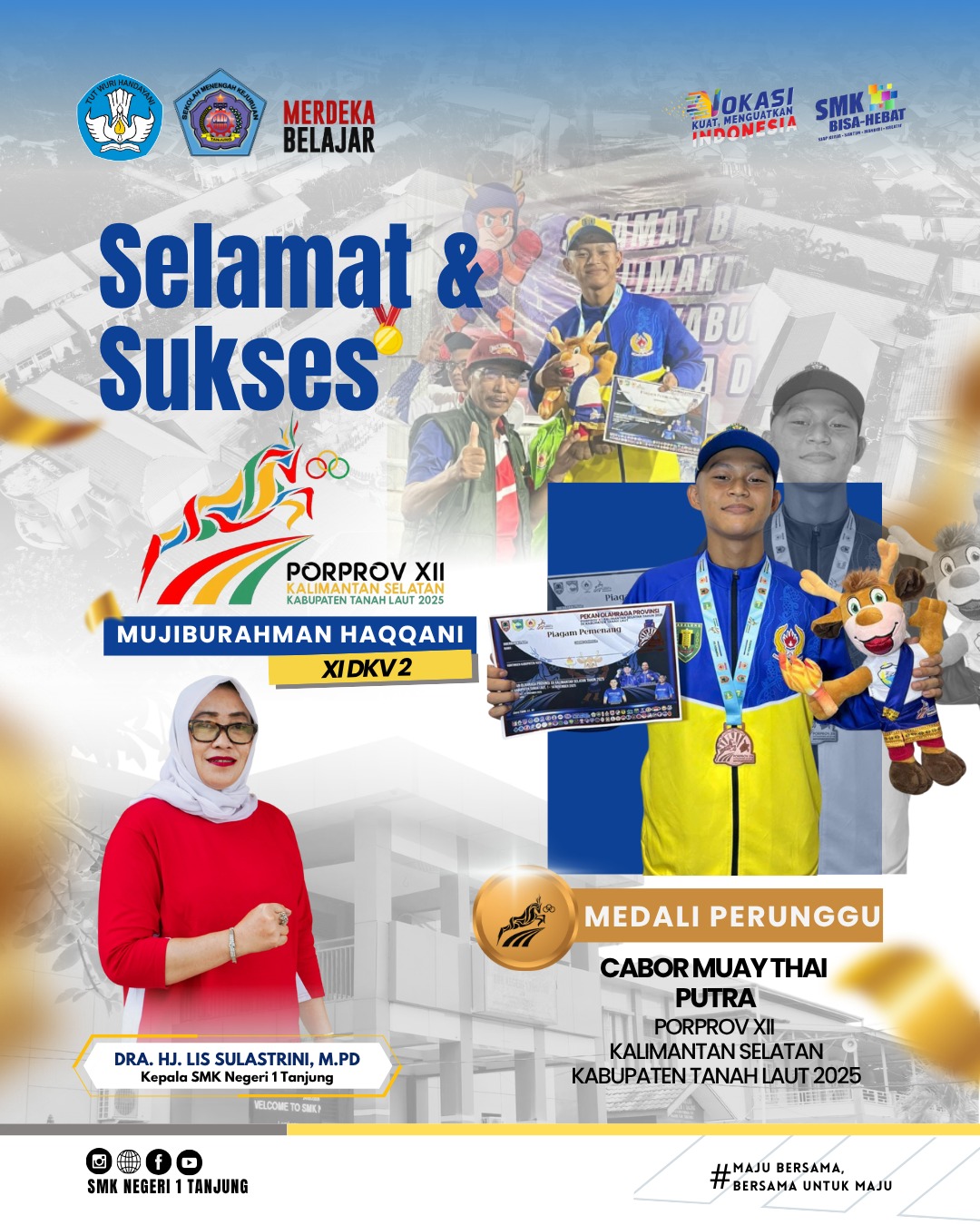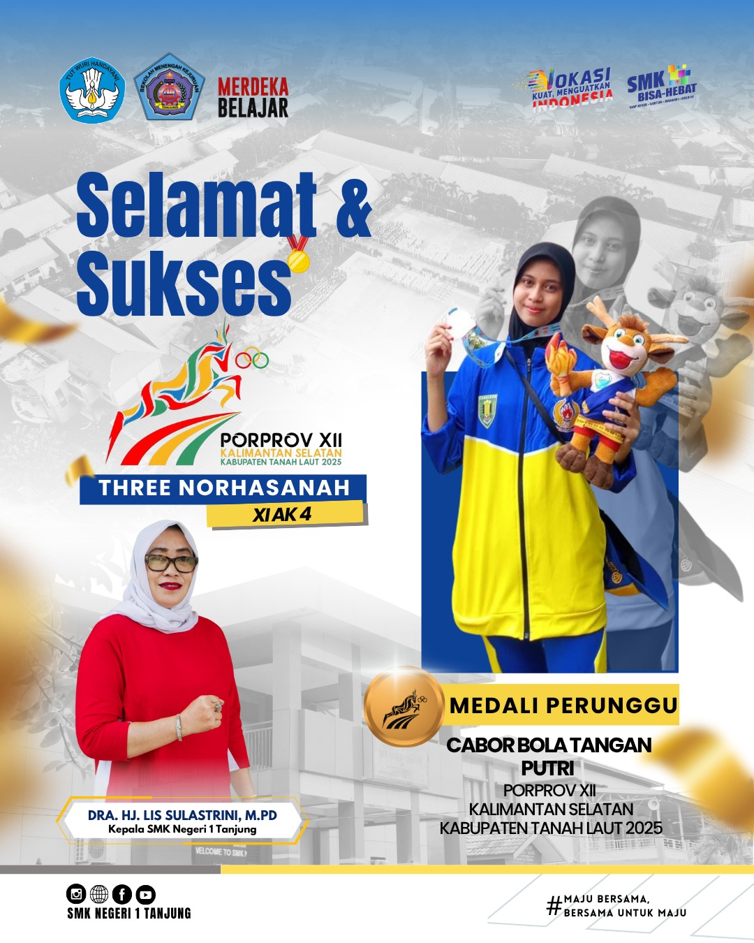 SMKN 1 Tanjung memberikan apresiasi setinggi-tingginya kepada para peserta didik berprestasi, pelatih, serta semua pihak yang telah mendukung perjuangan mereka.