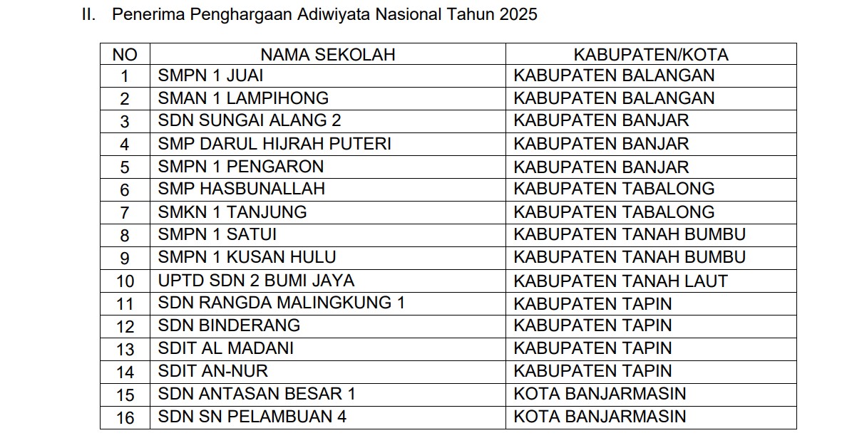SMK Negeri 1 Tanjung resmi terpilih sebagai penerima Penghargaan Adiwiyata Nasional Tahun 2025.