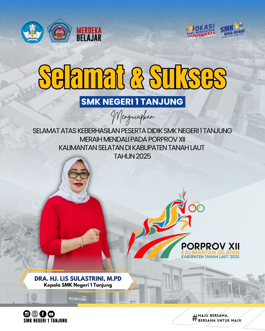 PESERTA DIDIK SMK NEGERI 1 TANJUNG MERAIH MENDALI PADA PORPROV XII KALSEL TAHUN 2025 05 November 2025 1 bulan yang lalu PESERTA DIDIK SMK NEGERI 1 TANJUNG MERAIH MENDALI PADA PORPROV XII KALSEL TAHUN 2025