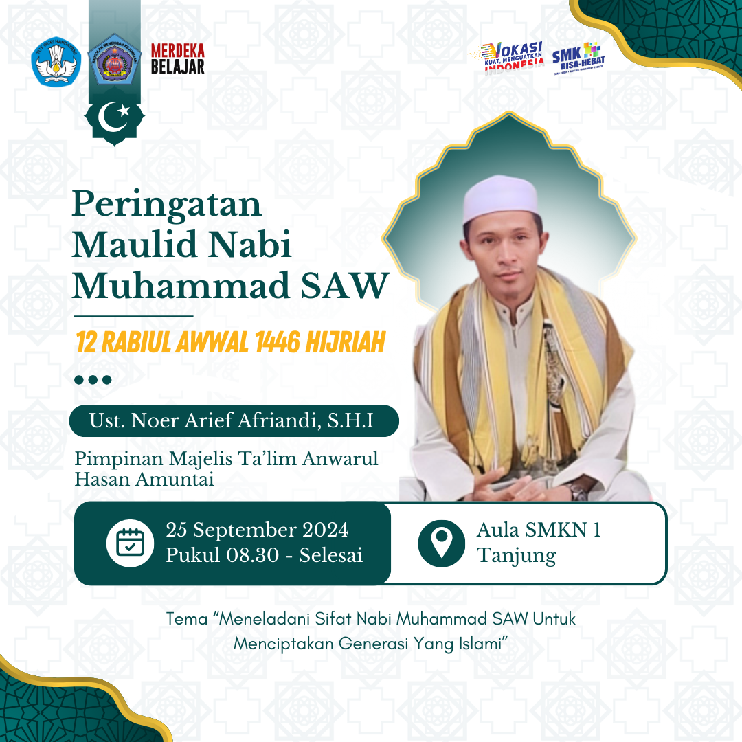 Peringatan Maulid Nabi Muhammad SAW di SMK Negeri 1 Tanjung dengan Tema " Meneladani Sifat Nabi Muhammad SAW Untuk Menciptakan Generasi Yang Islami".