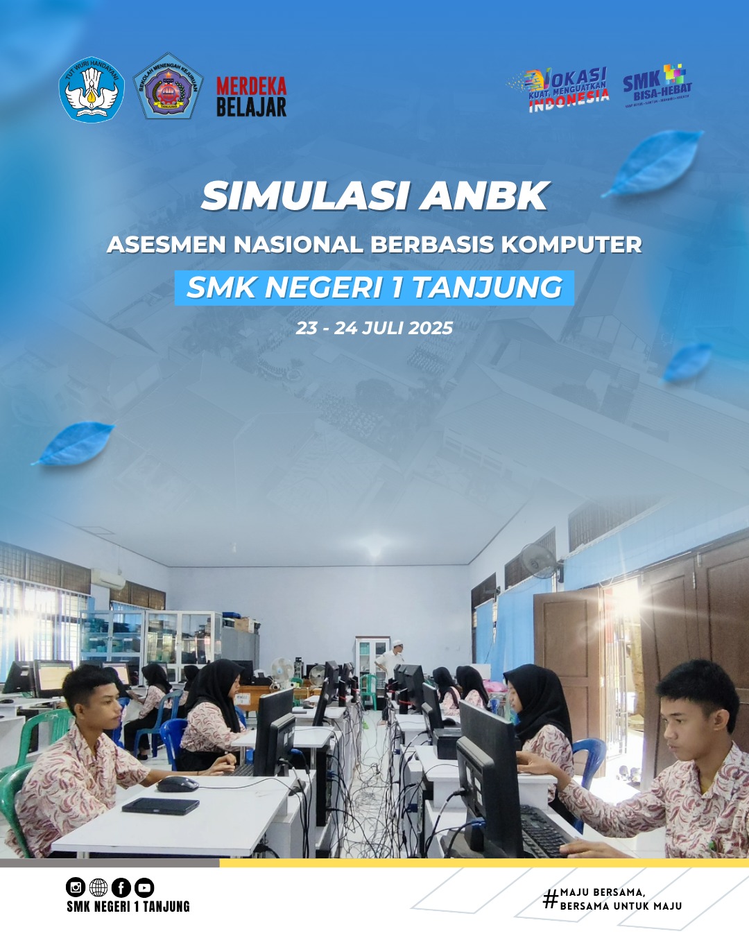 SMK Negeri 1 Tanjung telah melaksanakan Simulasi ANBK (Asesmen Nasional Berbasis Komputer) pada 23 sampai 24 Juli 2025 di ruang Lab. TKJ sebanyak 50 peserta didik.