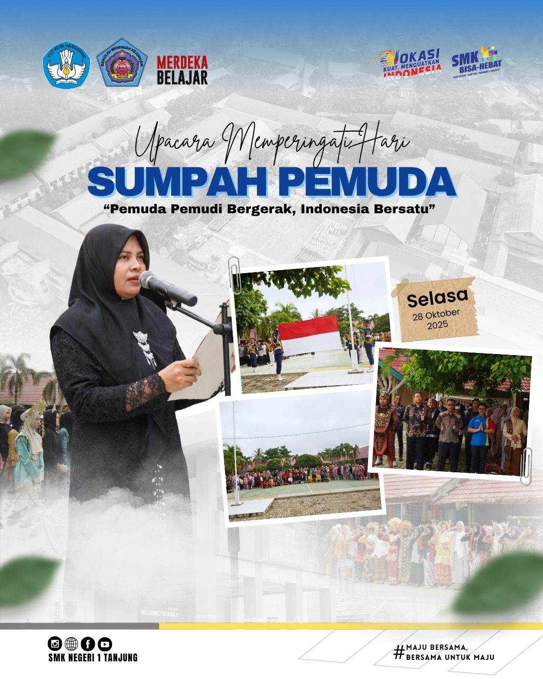 SMK Negeri 1 Tanjung melaksanakan upacara peringatan Hari Sumpah Pemuda ke-97 tahun 2025 dengan penuh khidmat. Upacara kali ini dipimpin oleh Ibu Fatmawati, S.Pd selaku pembina upacara dan diikuti oleh seluruh warga sekolah.